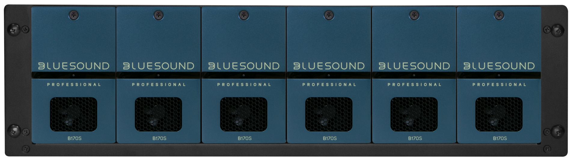 The form factor of the B170S allows it to be mounted individually vertically or horizontally on or under shelves or tables or on walls. Up to six B170S units can be mounted side-by-side in a 3U space in a rack using the optional RM160 rack mounting shelf for a compact 12-channel system with six independent or grouped zones.