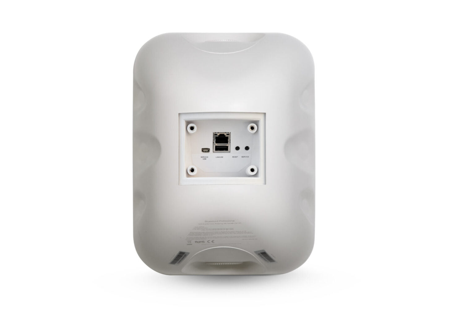 The Bluesound Professional BSP500 is a network active loudspeaker with integrated streaming capability designed specifically for use in either indoor or outdoor commercial installations. This unit is powered by Power over Ethernet(PoE) allowing a one-wire connection to the speaker for both power and audio. The player in the BSP500 is based on the established BluOS platform and is capable of playing and distributing content from local network storage as well as from a large number of streaming services, including some specifically designed for commercial use, such as SoundMachine, Custom Channels, QSIC, SiriusXM Music for Business, Tunify and radio stations. As well as stand-alone use, it is possible to use a pair of BSP500 speakers in stereo configuration and multiple BSP500’s in a room in either mono or stereo configurations. Use of the BSP500 in a larger BluOS system is also possible, allowing for grouping into user-definable groups of whatever size is required with other BSP500 units and/or any other connected Bluesound Professional players, amplified players or network speakers on the network in an installation.