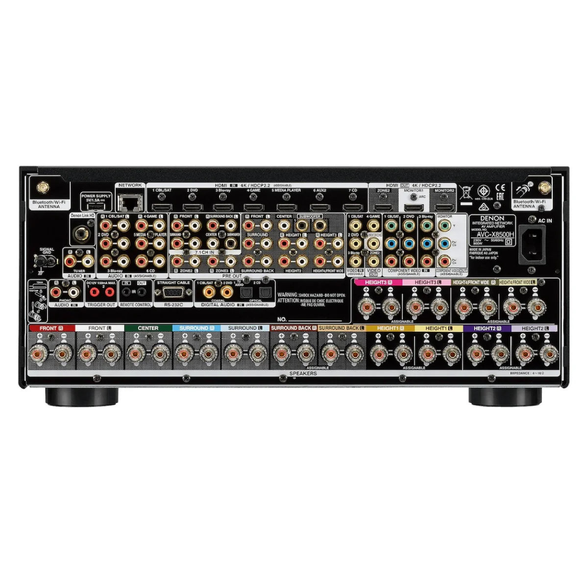 With 15 channels of amplification, our most powerful transformer, carefully selected parts, and hefty, high-rigidity construction, the AVC-A1H supports up to 9.4.6 configuration and delivers a professional theater experience in your home cinema. Designed and manufactured at Denon facilities in Japan.