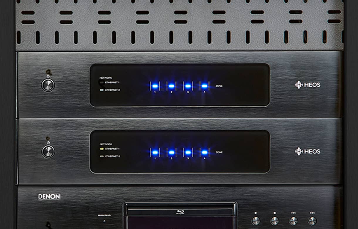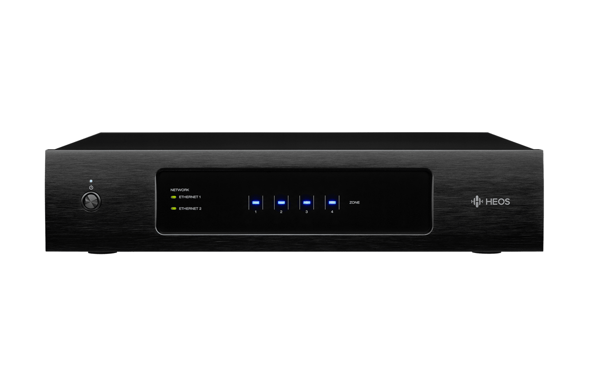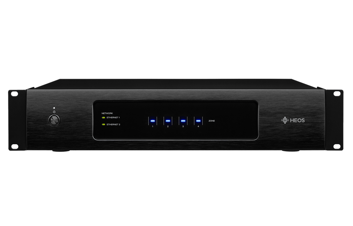Designed by custom integration specialists for custom integration professionals, HEOS Drive is a unique 4 zone whole home audio distribution system with 8 channels of Class D amplification, all in a 2RU single chassis.