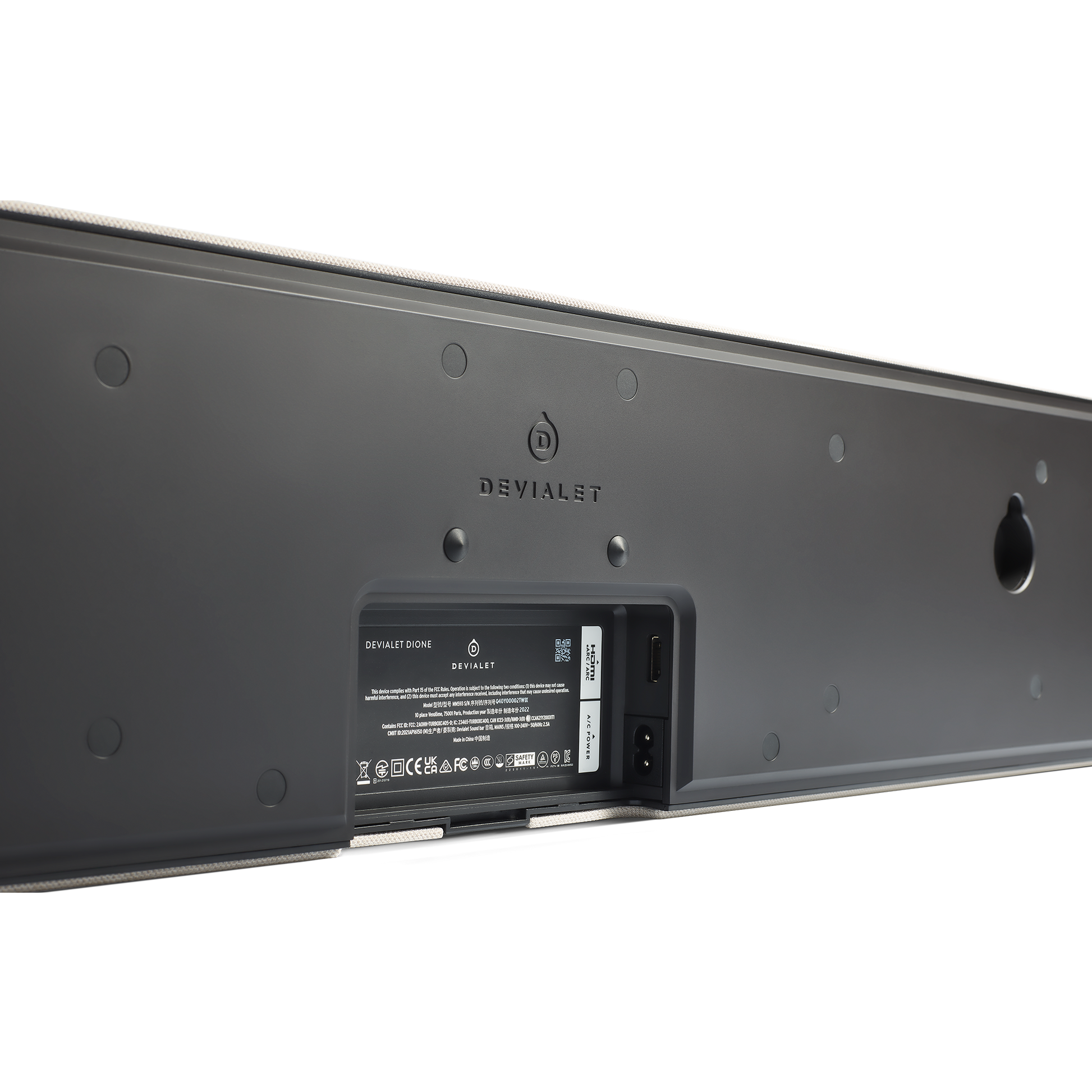 With more drivers than a traditional soundbar, Devialet Dione delivers room-filling sound with rich bass, clear medium, and precise treble. In other words, sound that plunges you into the scene.