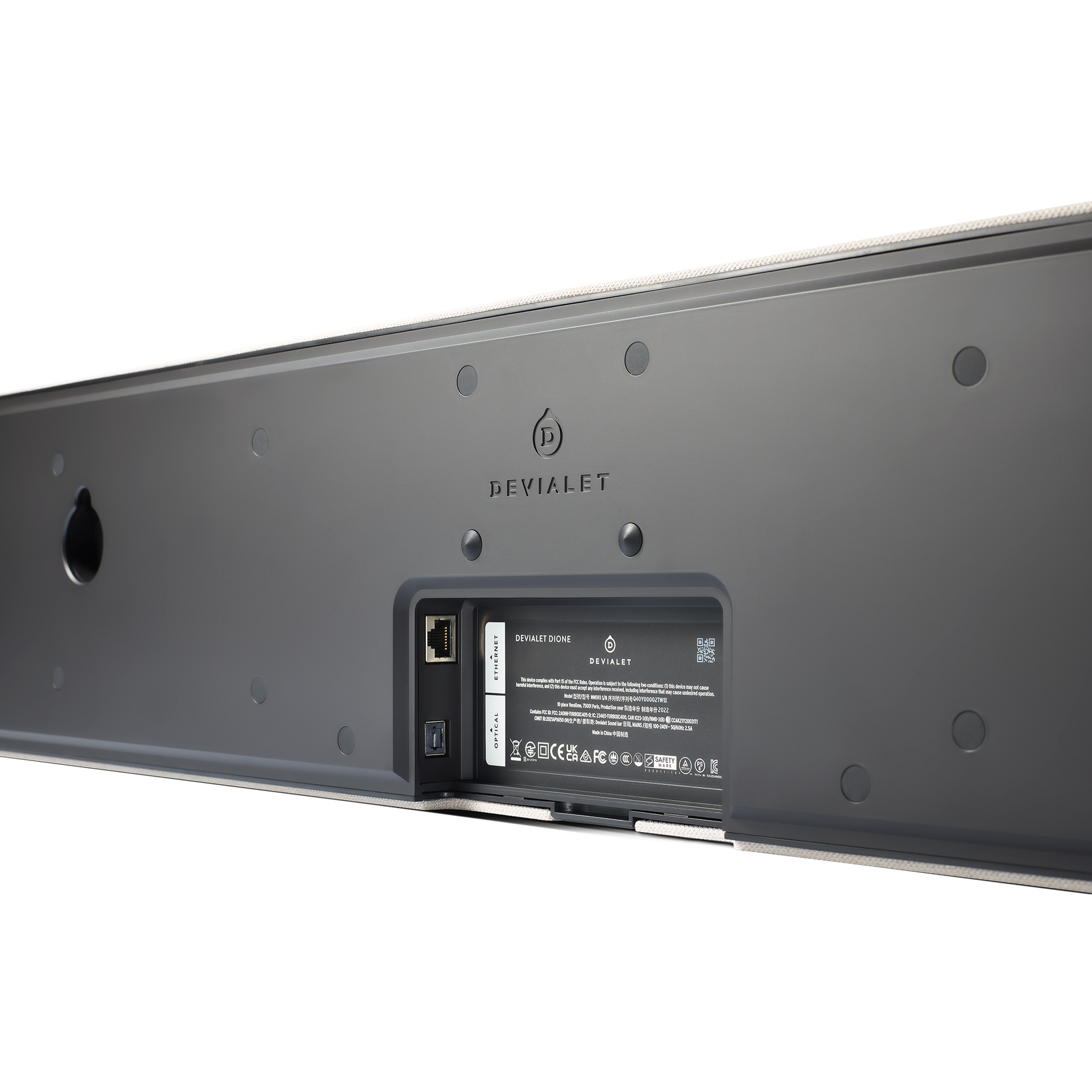 With more drivers than a traditional soundbar, Devialet Dione delivers room-filling sound with rich bass, clear medium, and precise treble. In other words, sound that plunges you into the scene.