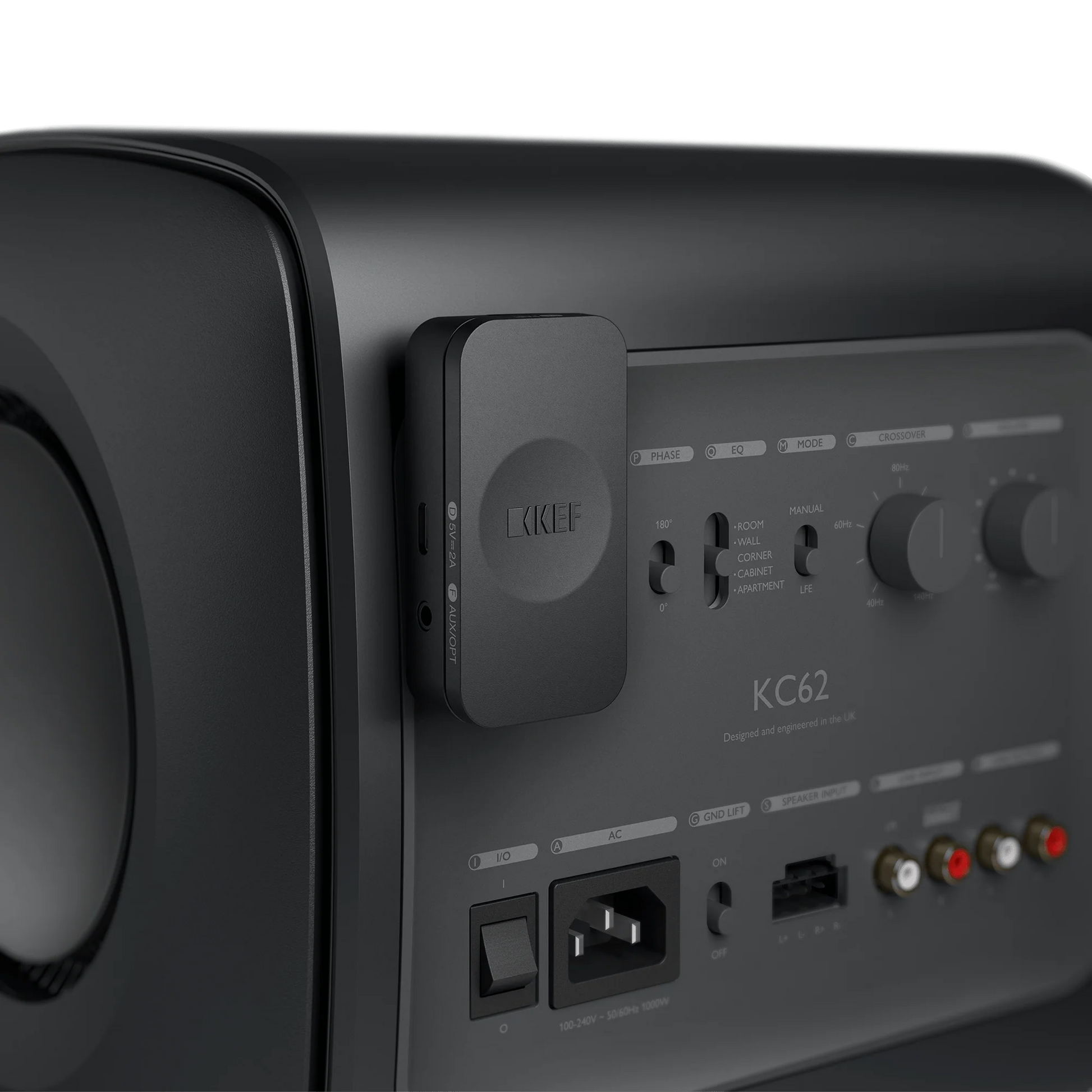 KW2 receives wireless signals from the XIO Soundbar and transmits them to any subwoofer it's connected to. It effortlessly plugs into the back of any active KEF subwoofer, including KC62, KC92 and Kube. Third party subwoofers can be connected via Aux/Optical Combo output.